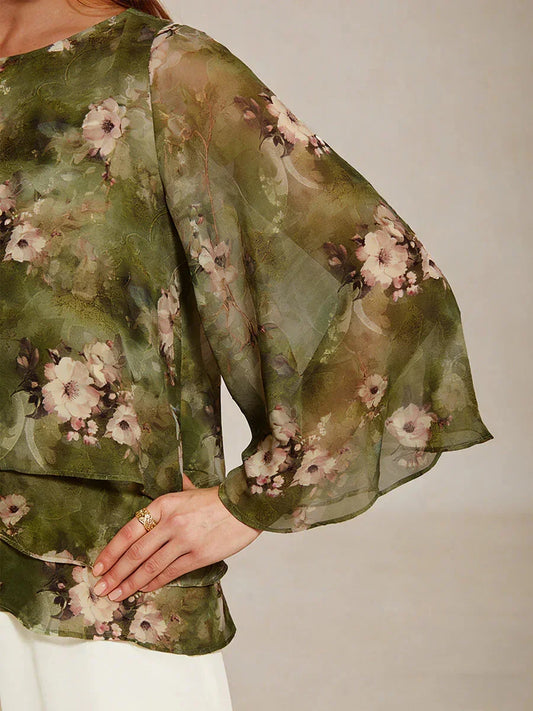 Floral Sheer Chiffon Knee-Length A Line Dress