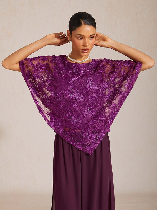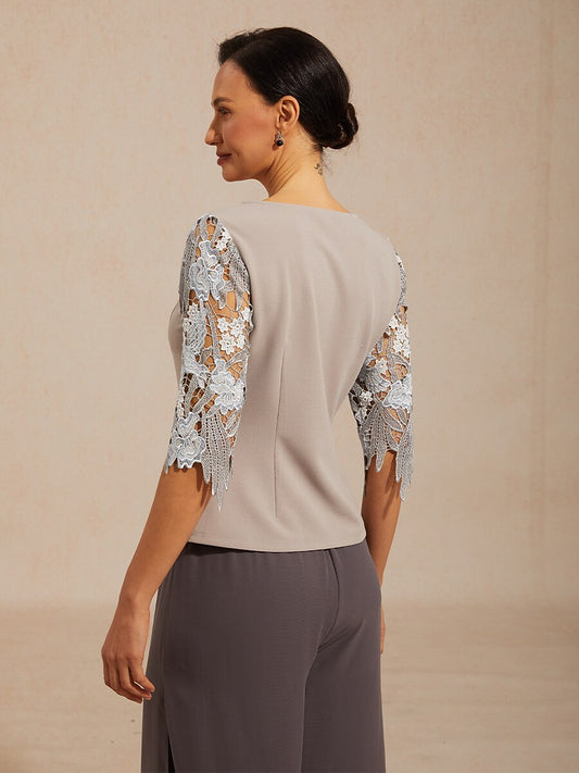 V-Neck Lace Sleeve Top with Embroidered Detail