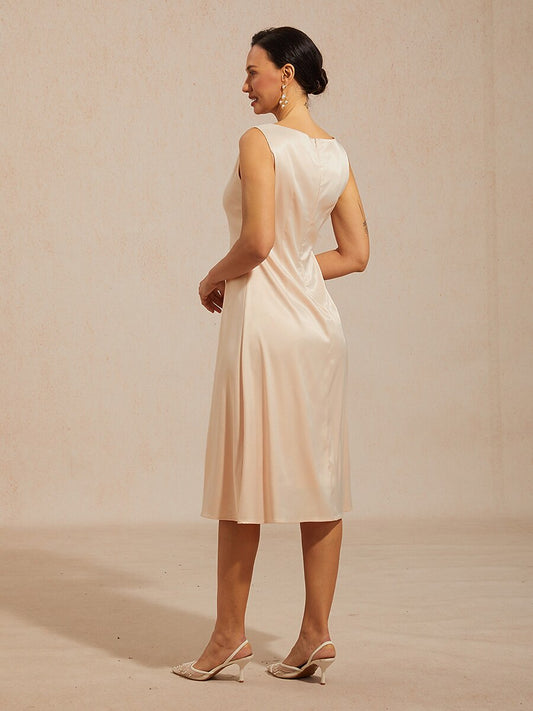 Floral Cowl Neck Tea-Length Dress with Flounce Hem