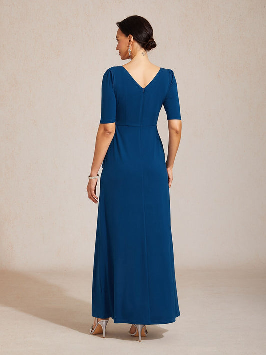Draped Neck Jersey Evening Dress with Pleated Bodice