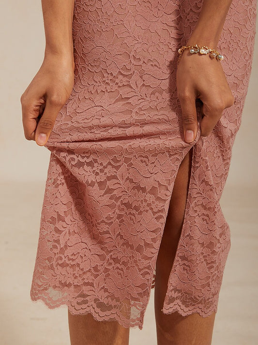 Ankle-Length Cold Shoulder Glitter Mesh Dress