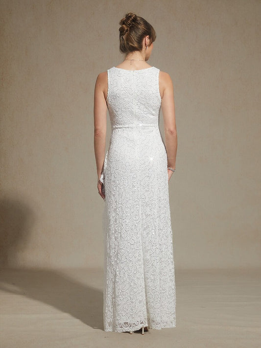 Rosette Lace A-Line Gown with Sequin Embellishment