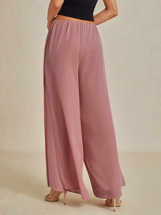 Straight Leg Pant With Chiffon Split Leg Overlay