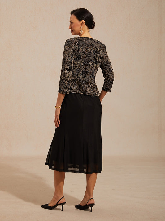 Paisley Jacket Dress with Subtle Sequin Detail