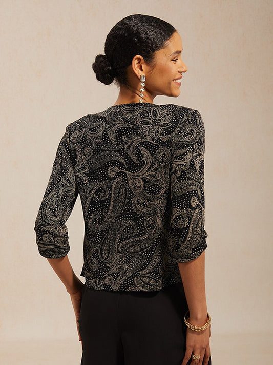 Paisley Knit Top with Subtle Sequin Detail