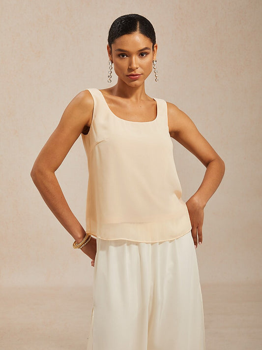 Metallic Pleated Chiffon Asymmetrical Layered Blouse