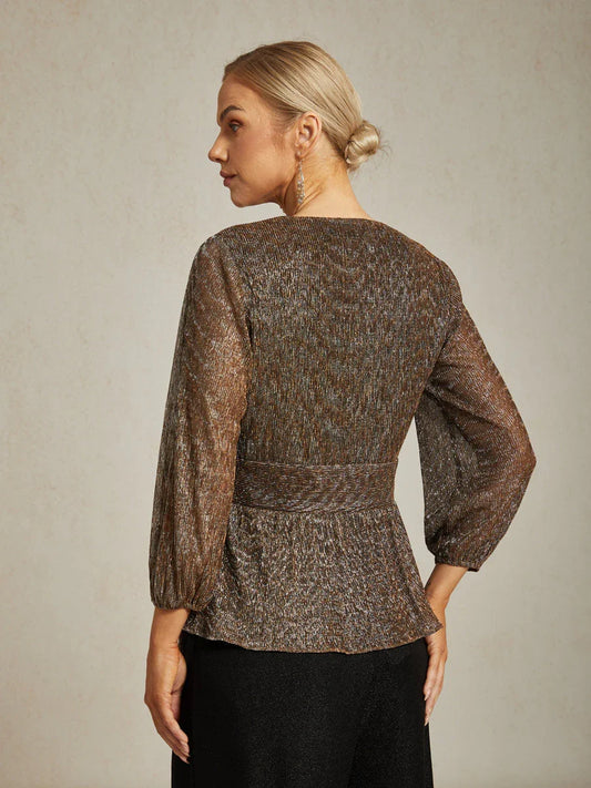 Metallic Pleated Chiffon Evening Wrap Top
