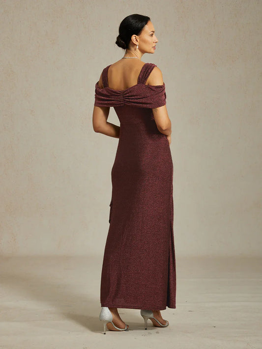 Cold Shoulder Glitter Metallic Knit Dress