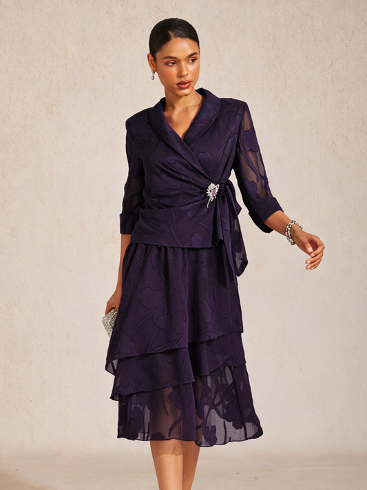 Metallic Pleated Chiffon Long Jacket with Layered Design