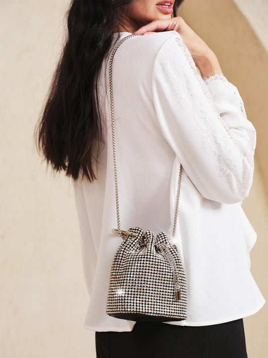 Bolso de mano de cristal con asa de anillo dorado Elegante bolso