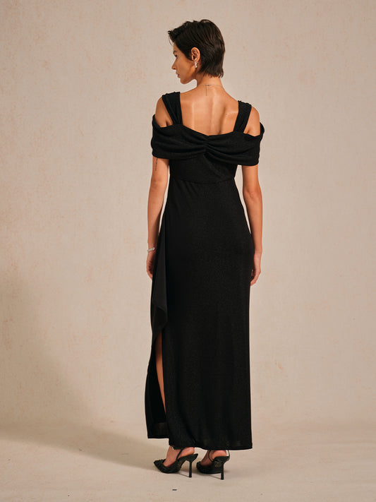 Vestido elegante de lentejuelas con escote en V y hombros descubiertos
