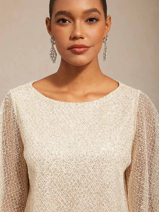 Mesh Sequin 3/4 Sleeve Jacket Dress