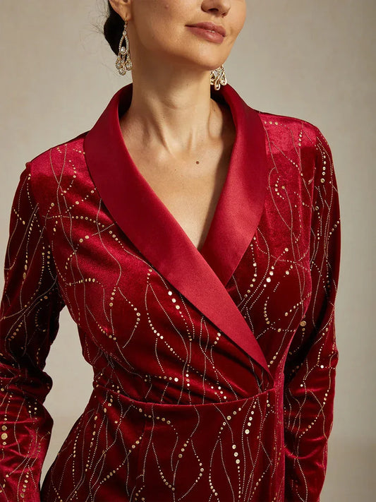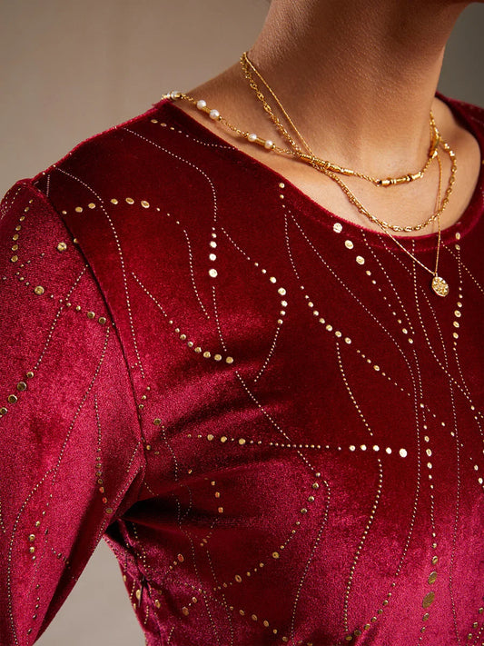 Velvet Puff Sleeves Twinset with Embellished Neckline Closure