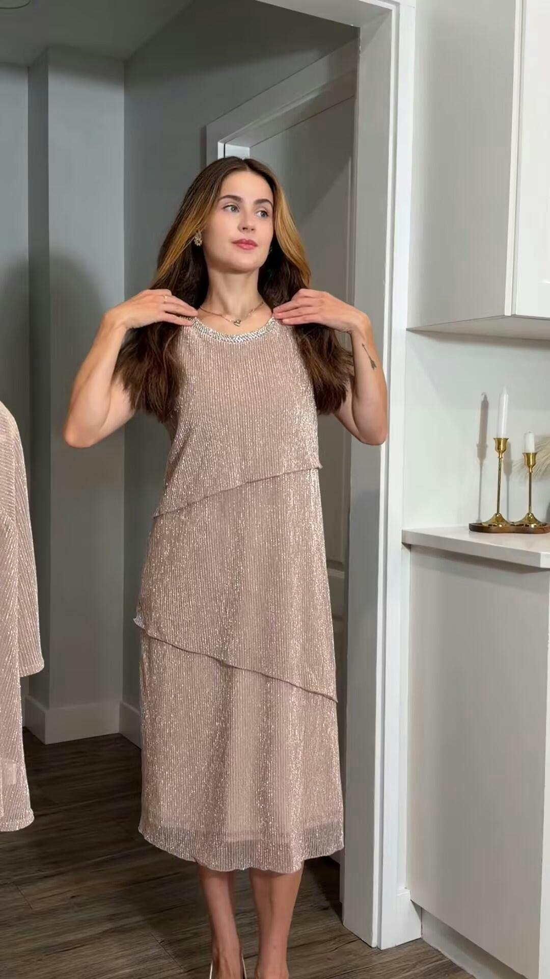 The stretch lining makes it easy to wear, and the layered chiffon adds lovely dimension