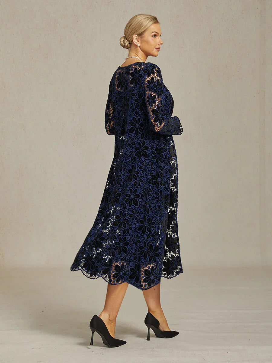 Ensemble robe fleurie brodée en dentelle et maille