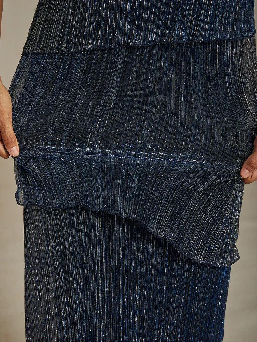 Metallic Pleated Chiffon Asymmetrical Layered Blouse