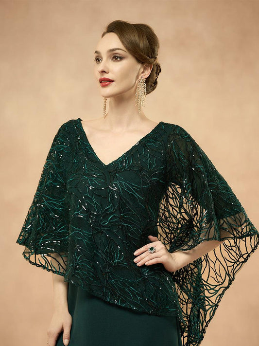 Abito elegante in pizzo con scollo a V, lunghezza al ginocchio e paillettes