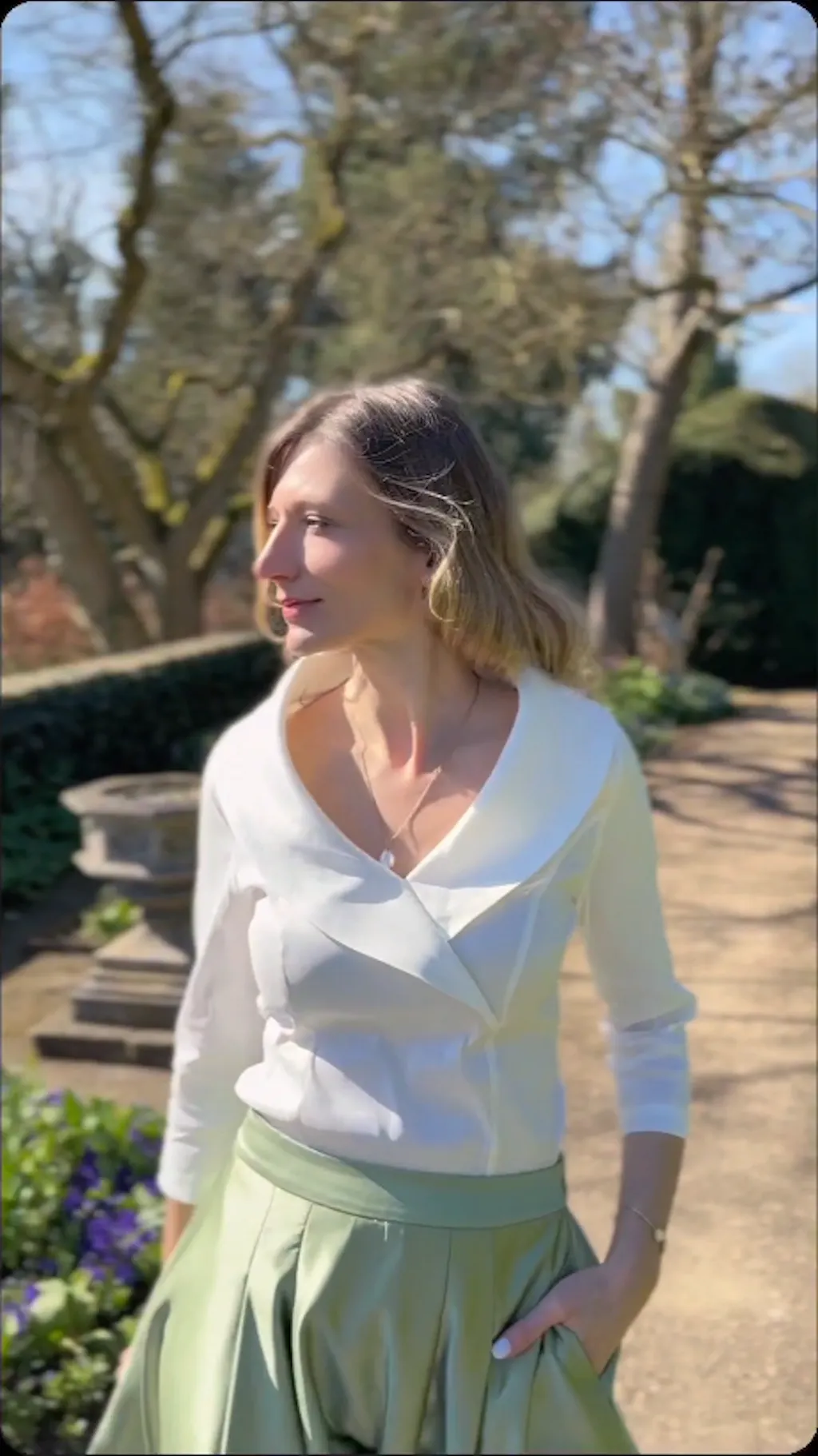 A really chic top. Simple, elegant, and perfect for pairing with skirts or tailored pants.