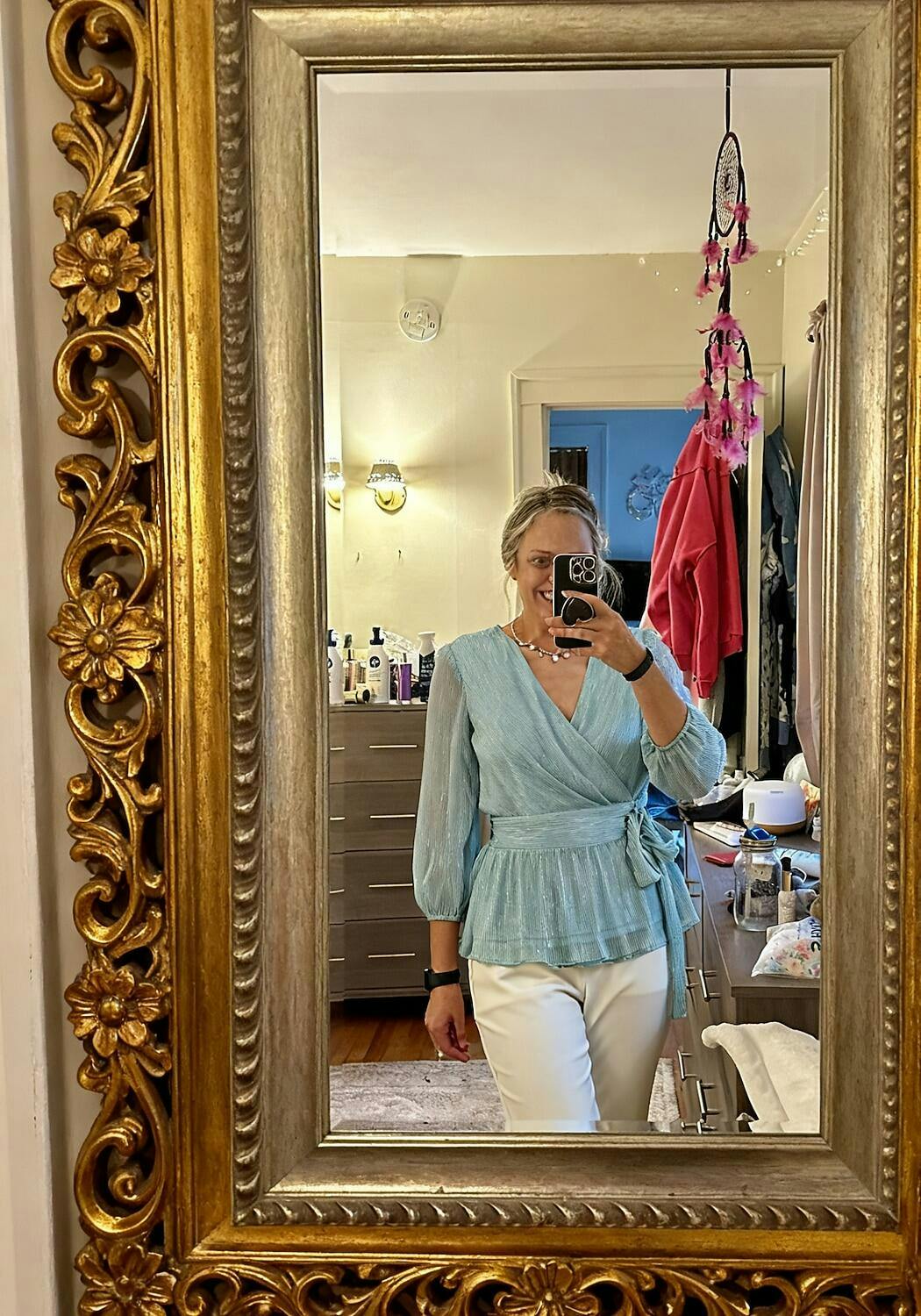 Shine effortlessly in this metallic pleated chiffon wrap top, designed to flatter with a feminine silhouette. The elegant wrap style highlights the waist while offering a graceful drape, complemented by 3/4 sleeves with elastic cuffs and a comfortable stretch lining for all-day comfort. Crafted from lightweight shimmering pleated chiffon, this blouse brings both sophistication and versatility.Perfect for pairing with skirts, trousers, this versatile piece is ideal for evening events, parties, or festive gatherings.