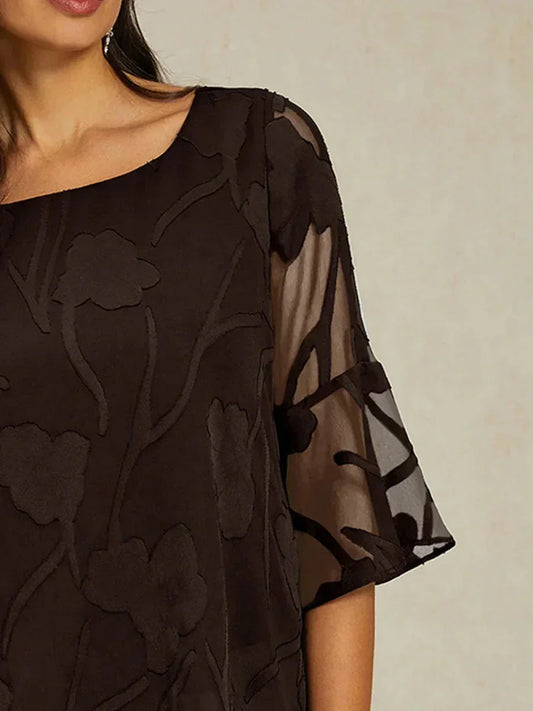 3/4 Sleeve Rosette Lace Blouse with Sequin Detail