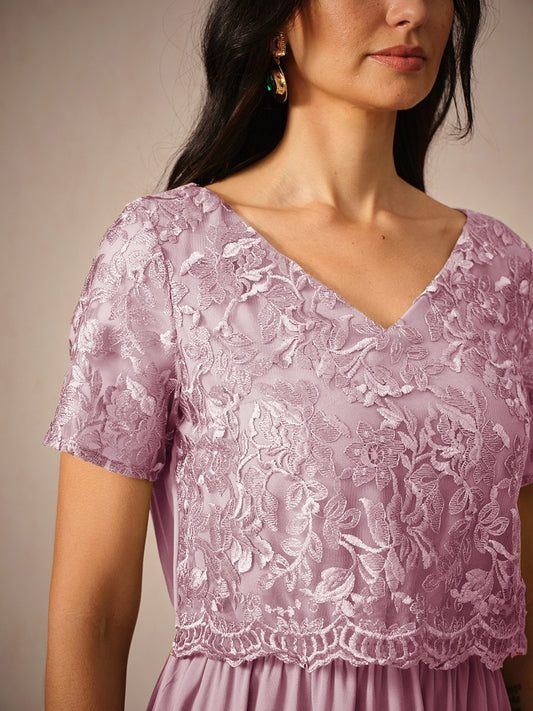 Chiffon Mesh Lace Embroidered Ruffle Floral Two Piece Dress