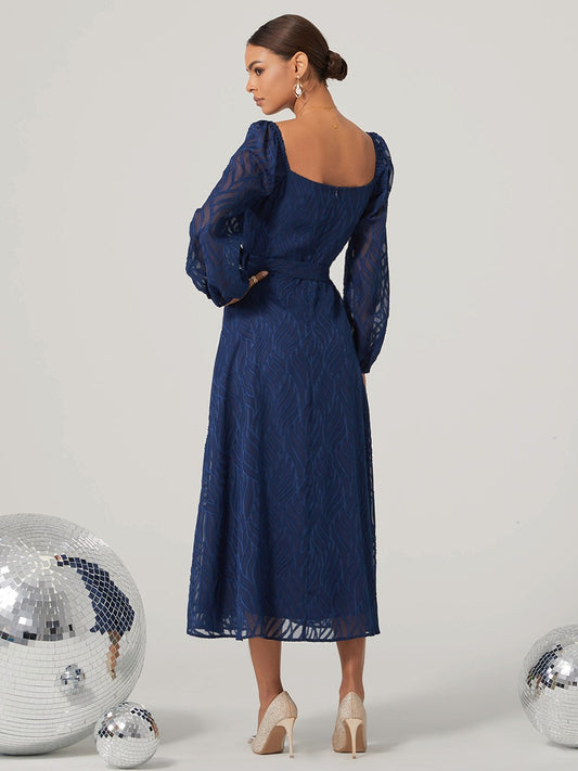 Black Sequins Puff Sleeve Maxi Dress with Empire Waist
