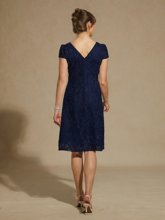 Floral Sequin Stretch Mesh Short Sleeve Dress