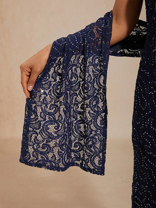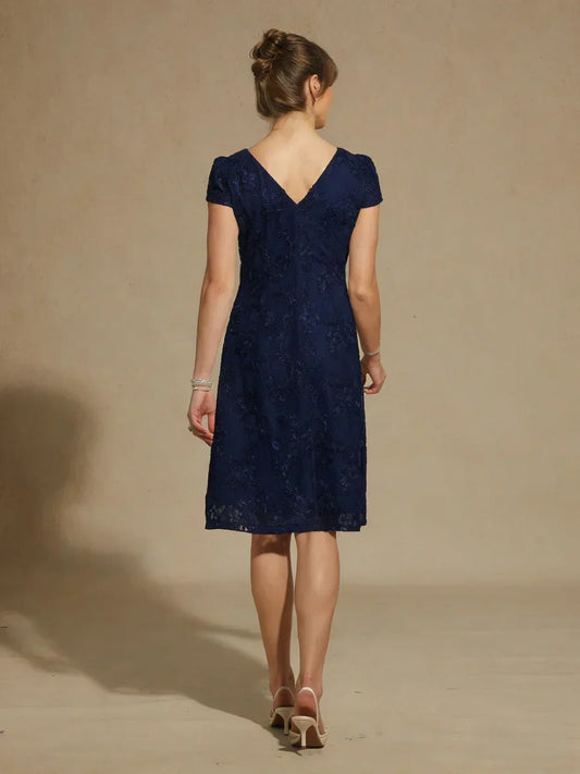 Rosette Lace Cap Sleeve V-neck Mermaid Gown