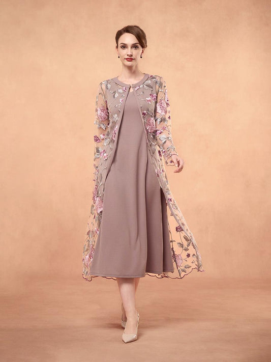 Chiffon Mesh Lace Embroidered Ruffle Floral Two Piece Dress