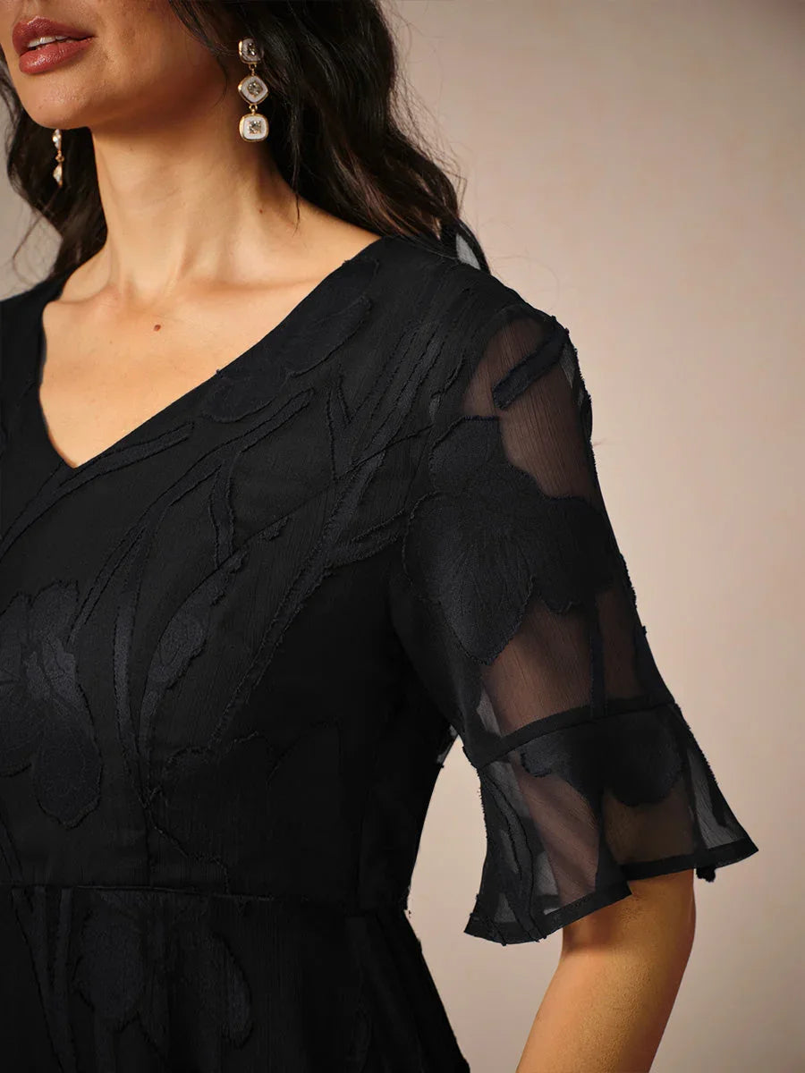 Elegant Formal Dress with Embellished Flutter Sleeves