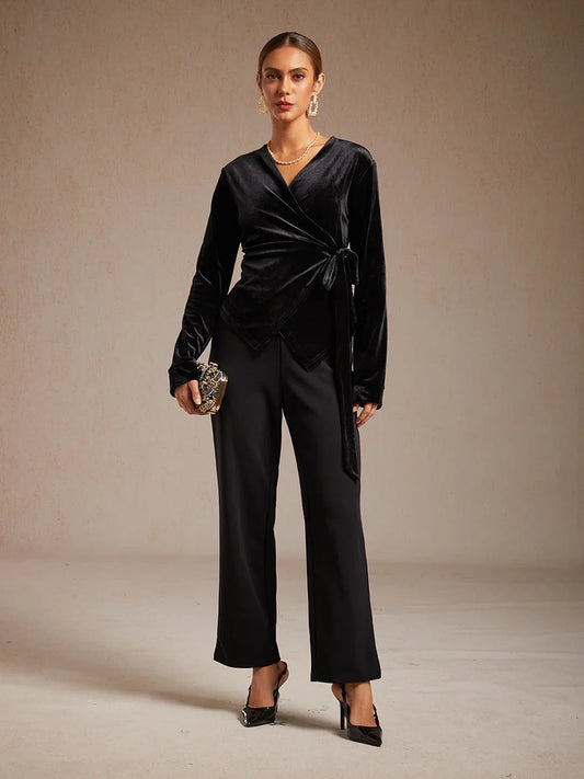 Velvet Wrap Blouse with V-Neckline