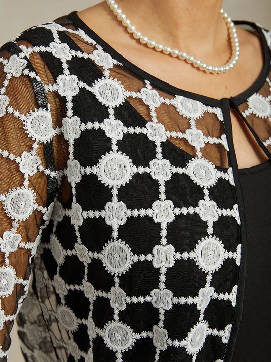 Geometric Polka Dot Embroidered Lace Jacket in Black and White