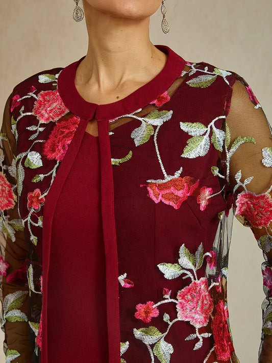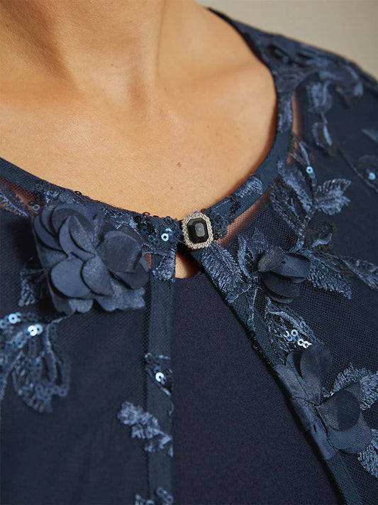 Graceful Mesh Lace Jacket with 3D Floral Embellishments