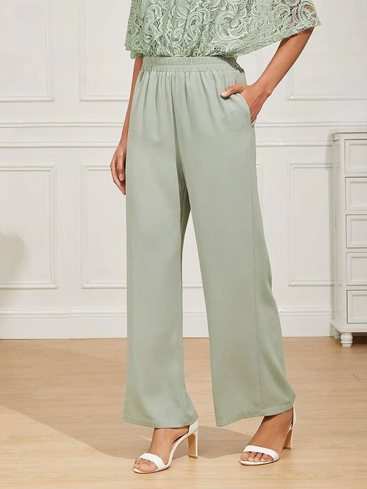 Mid-Rise Elastic Waist Wide-Leg Chiffon Pants