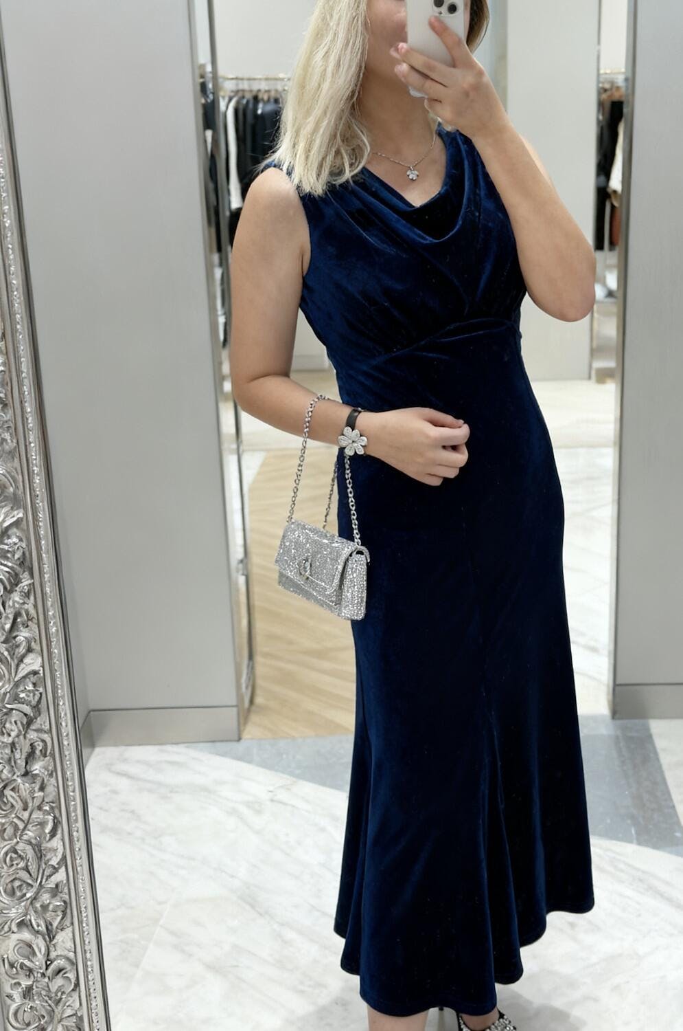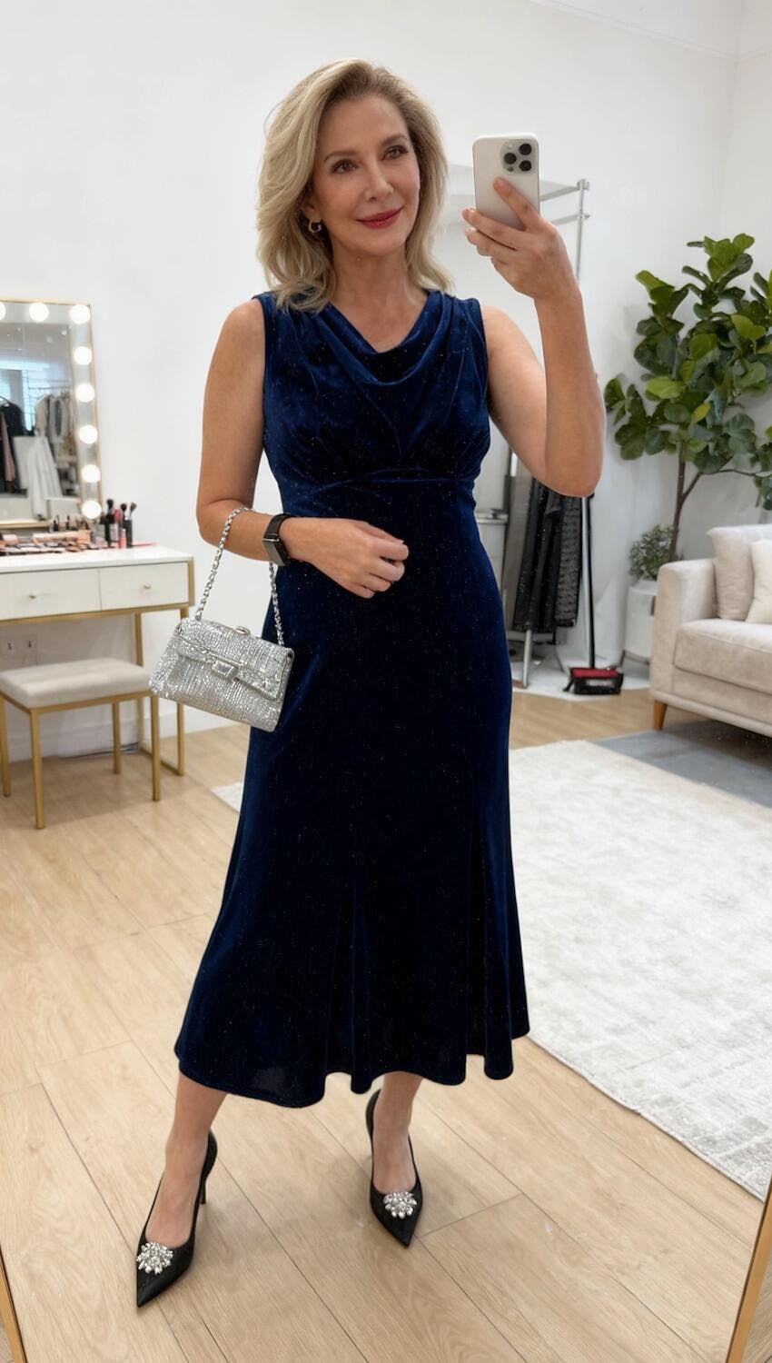 High-Stretch Velvet Sleeveless Midi Dress with Cowl Neck