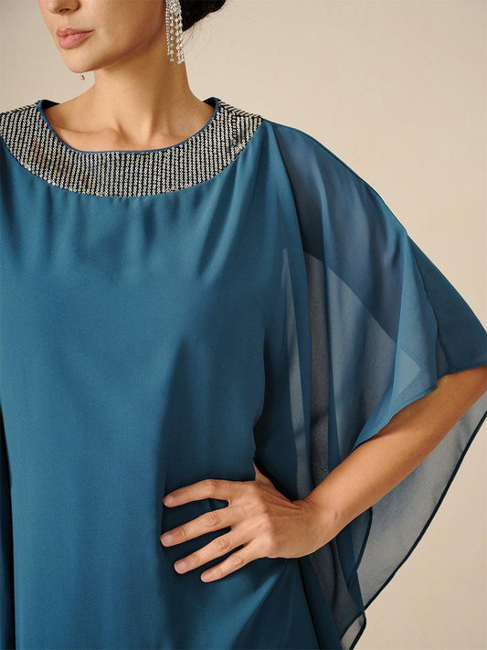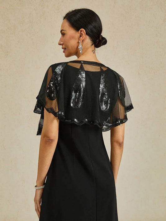 Asymmetrical Boat Neck Ruffled Chiffon Cape Dress