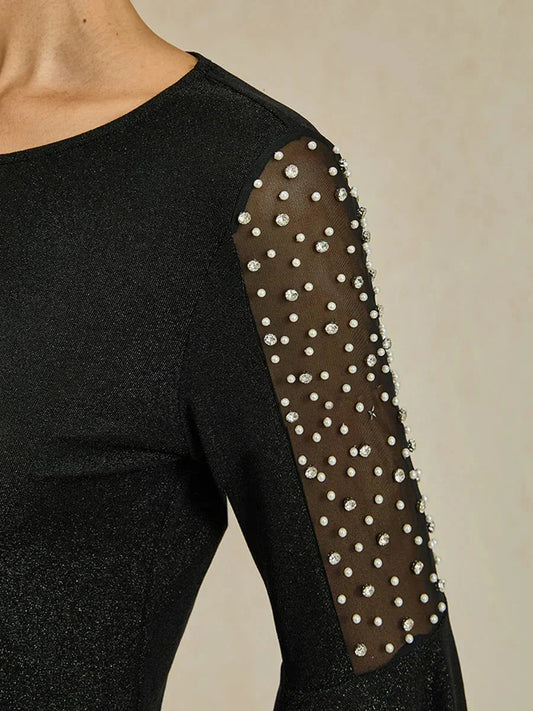 Beaded Illusion Metallic Knit Blouse
