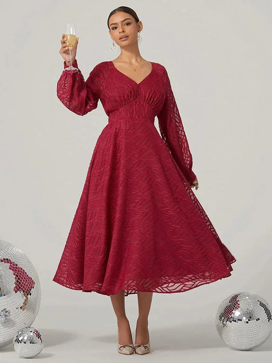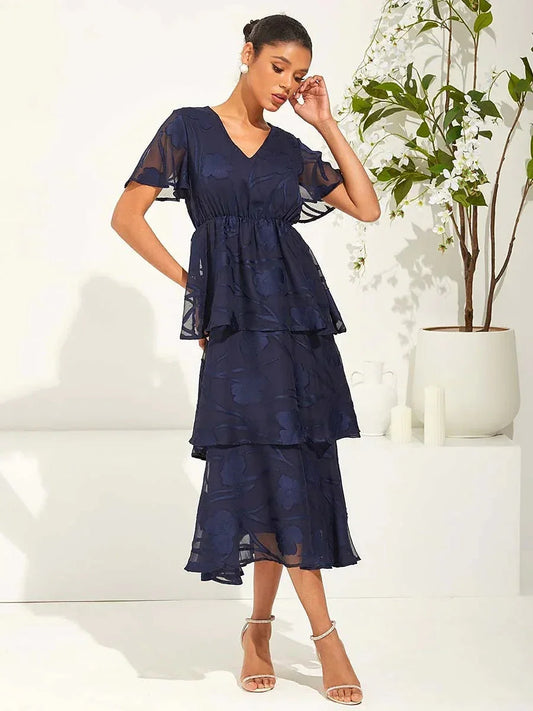 Elegant Formal Dress with Embellished Flutter Sleeves