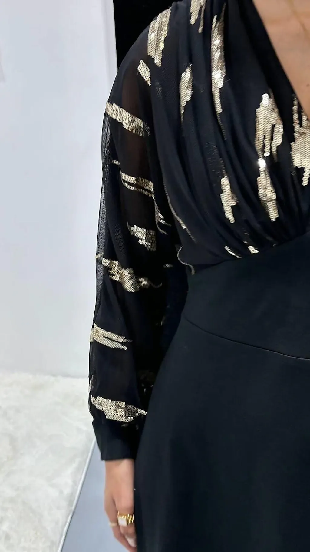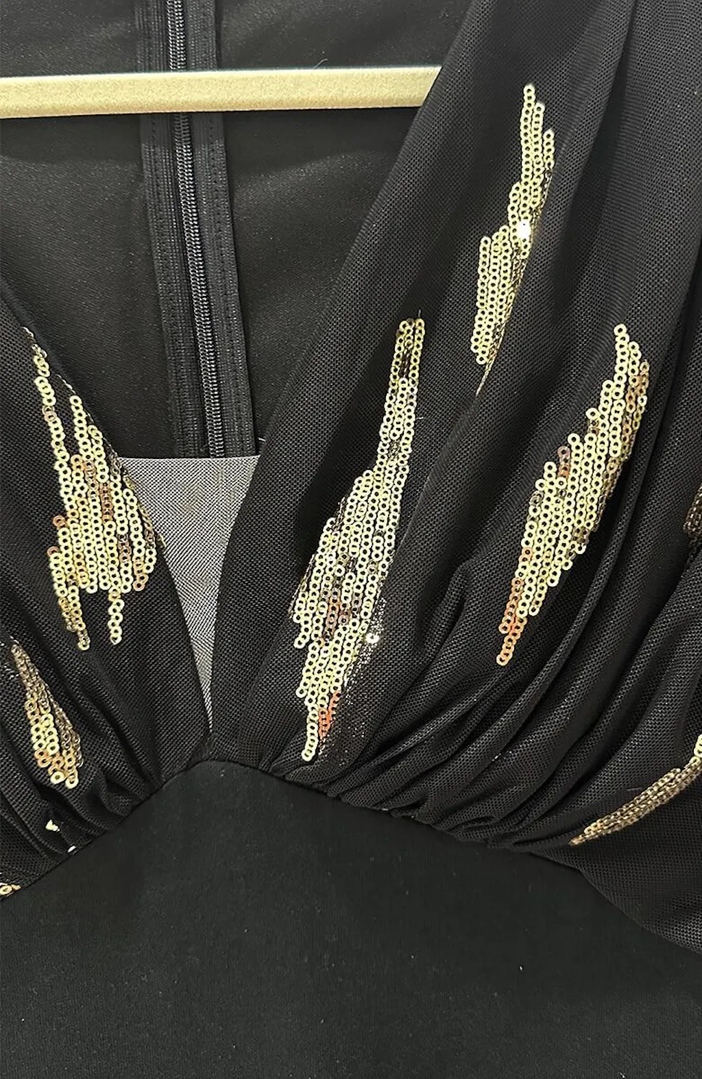 - Fabric : Mesh, sequins, stretch fabric