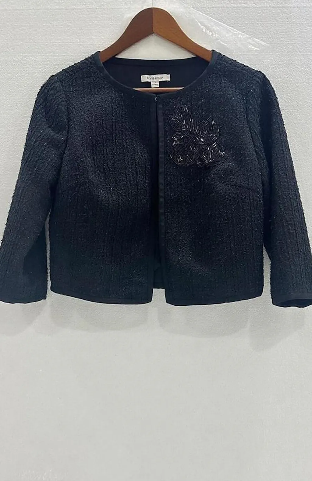 Cropped 3/4 Sleeve Tweed Jacket with Beaded Embroidery