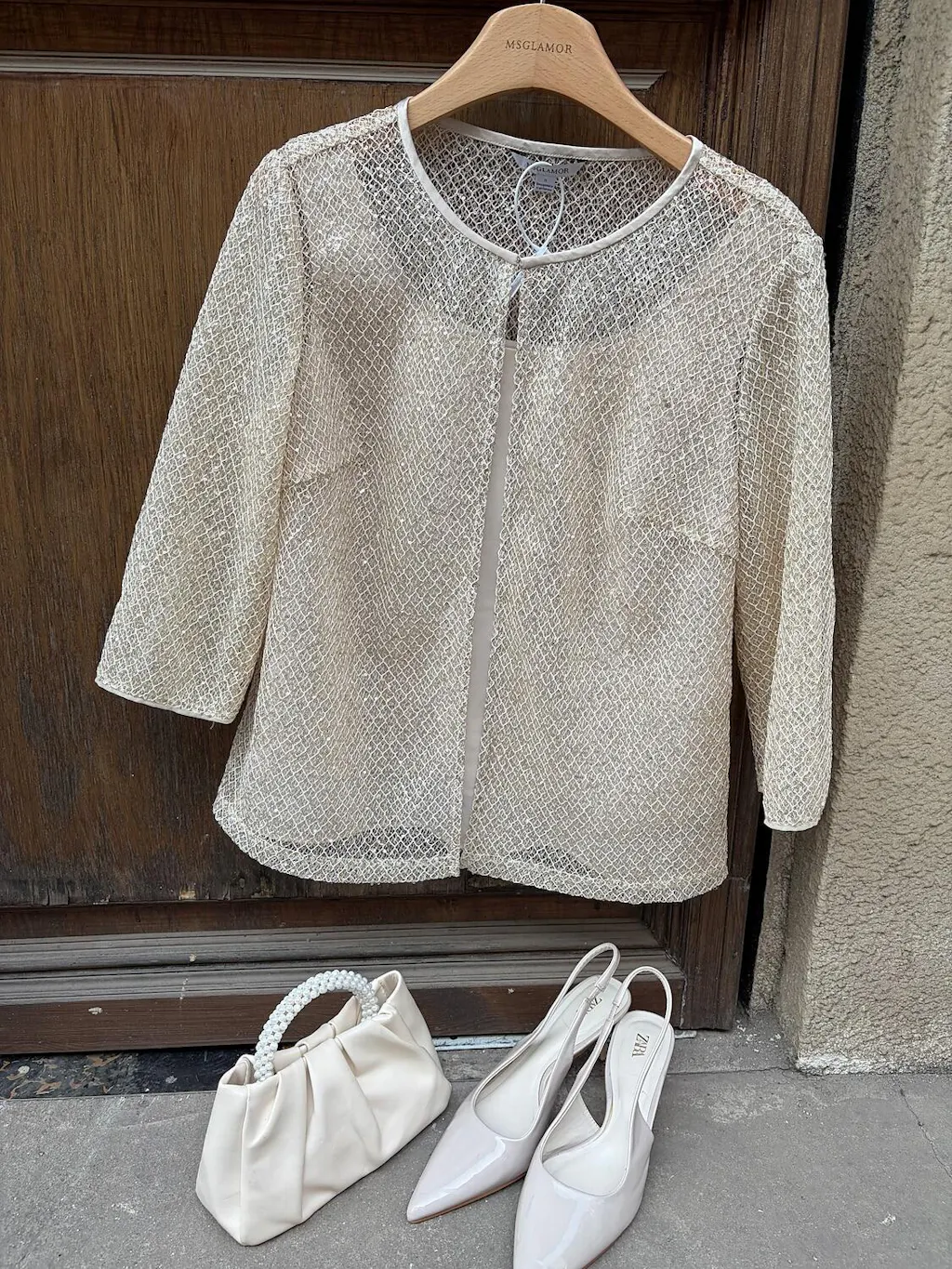 Sequin Mesh Round Neck 3/4 Sleeve Twinset