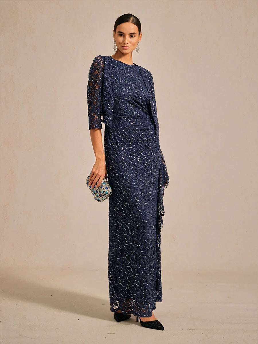 Ruffle Flutter Lace Maxi Dress