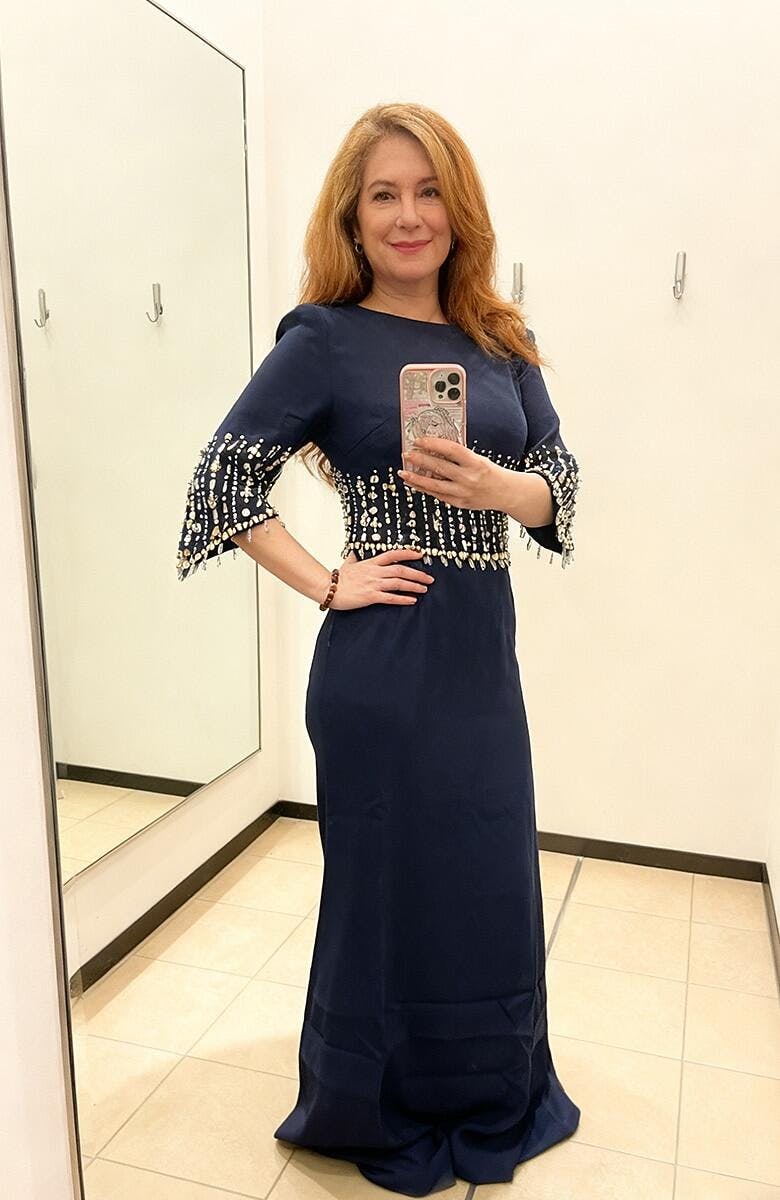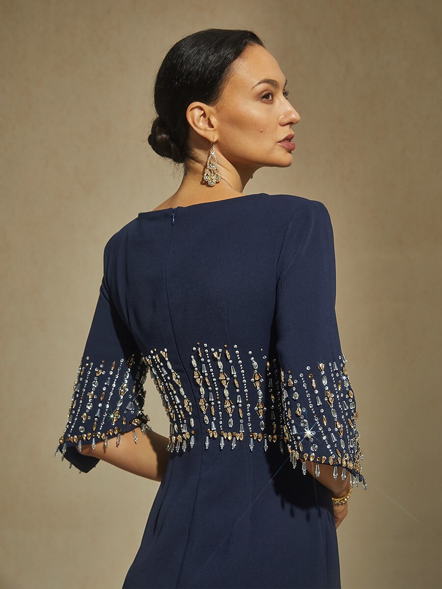 Elegant Formal Dress with Embellished Flutter Sleeves