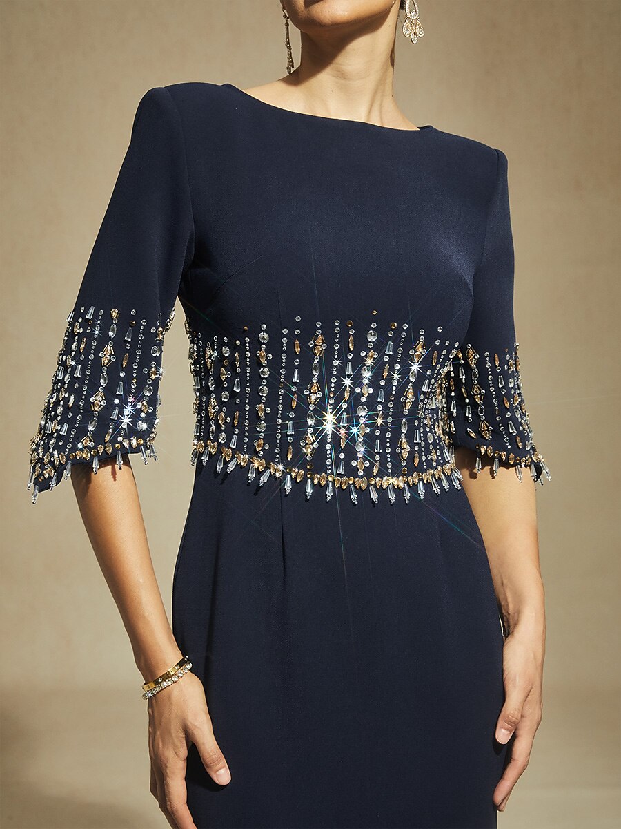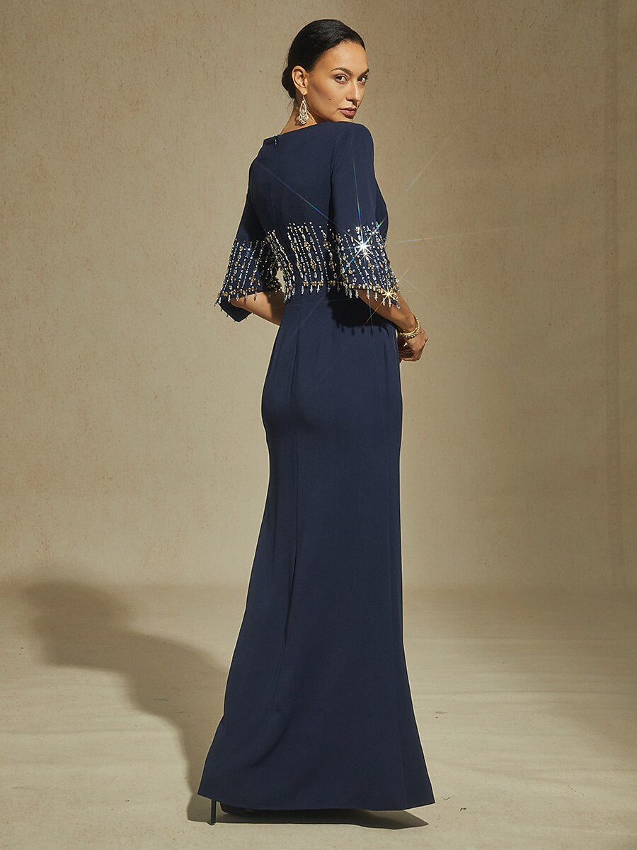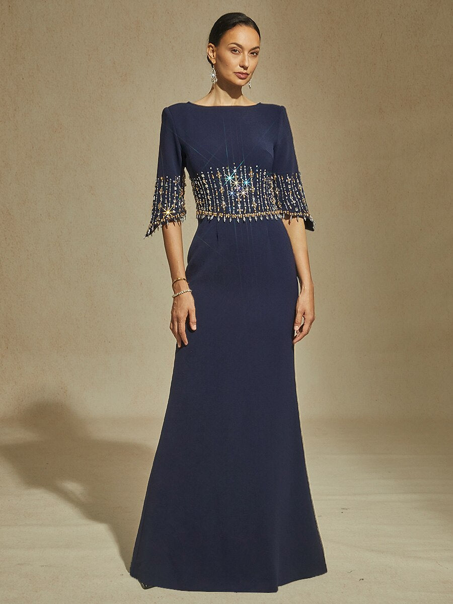 Boat Neck Mermaid Evening Gown with Crystal Details