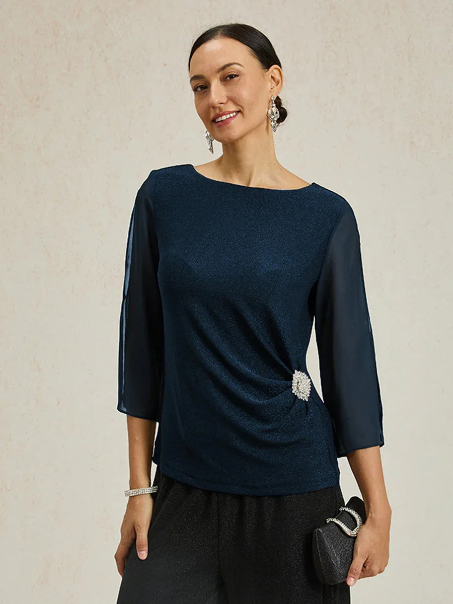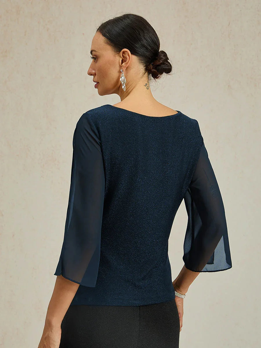 Elegant 3/4 Sleeve Metallic Knit Blouse