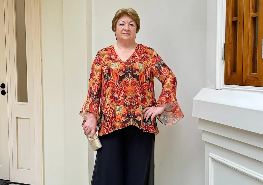 Floral Chiffon Boat Neck Blouse with A-Line Sleeves