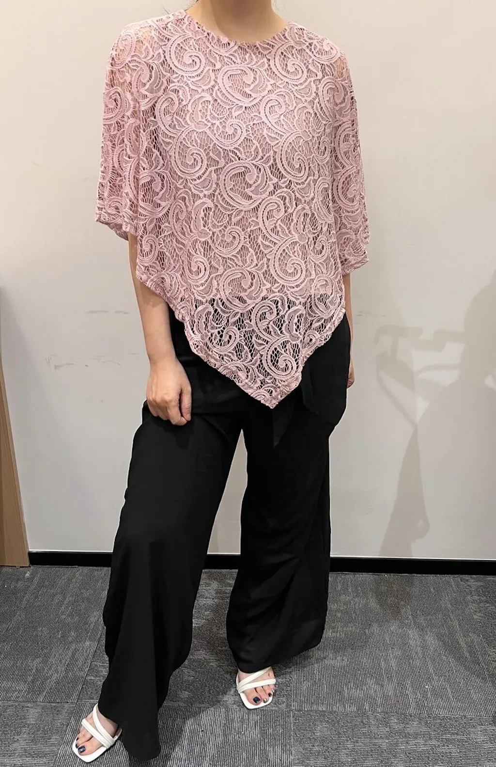 This airy lace top features a relaxed silhouette with batwing half sleeves and an intricate lace pattern. Designed with a classic crew neckline and a loose fit, it offers both comfort and elegance. The fresh tone makes it perfect for spring and summer, whether paired with matching trousers or styled casually. Ideal for day outings, casual gatherings, or semi-formal events.