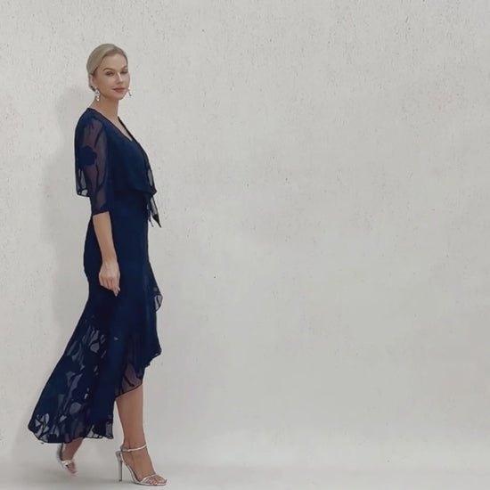 Floral Chiffon Evening Gown with Asymmetrical Hem