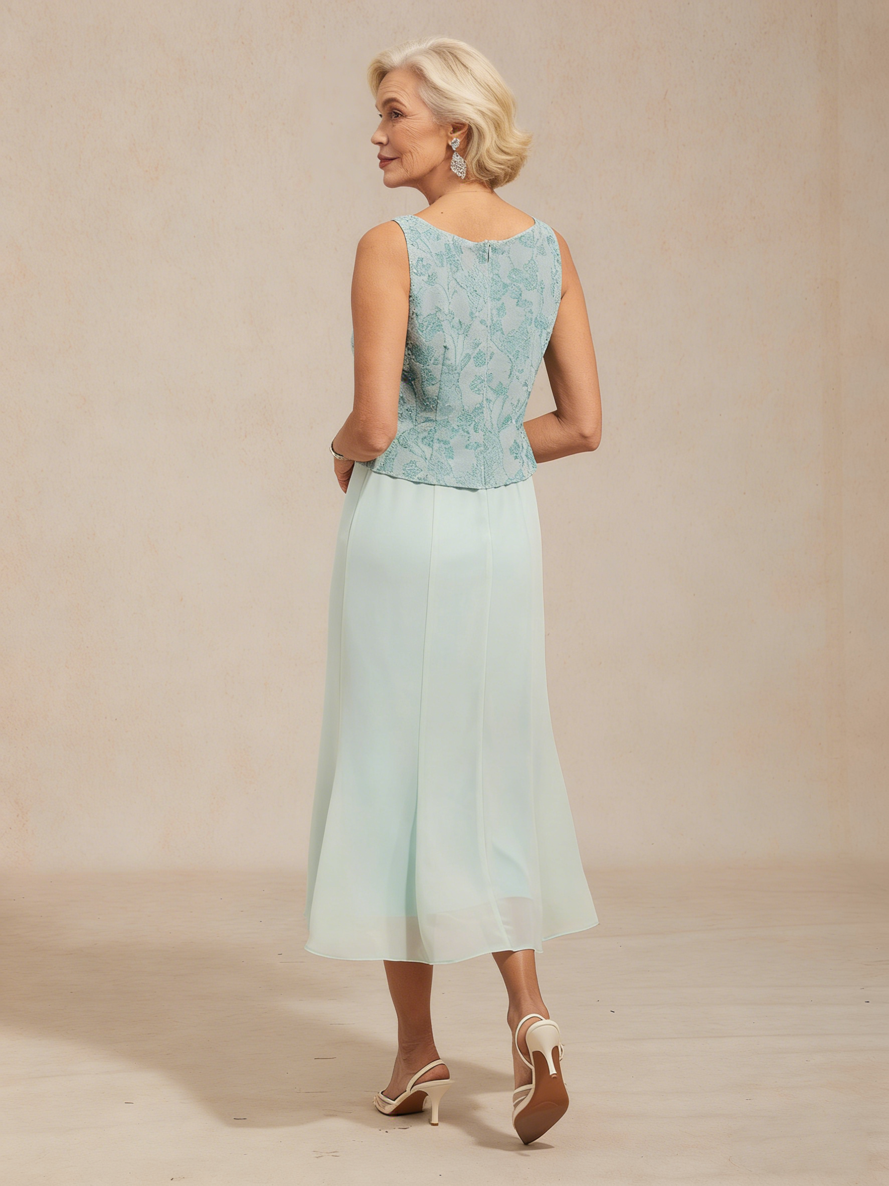 This knit floral embellished jacket dress is a sophisticated choice for any special occasion. The knit jacquard fabric with heat-set rhinestones on the jacket adds a touch of luxury and glamour. Fastened with diamond buttons, this jacket dress provides a flattering fit while remaining comfortable and stylish. The sleeveless dress features a matching upper half, while the lower portion is made from a soft, breathable knit fabric, offering comfort and flexibility. Perfect for spring weddings, parties, and cocktail events, this dress is designed with moms in mind, combining elegance with ease of wear.