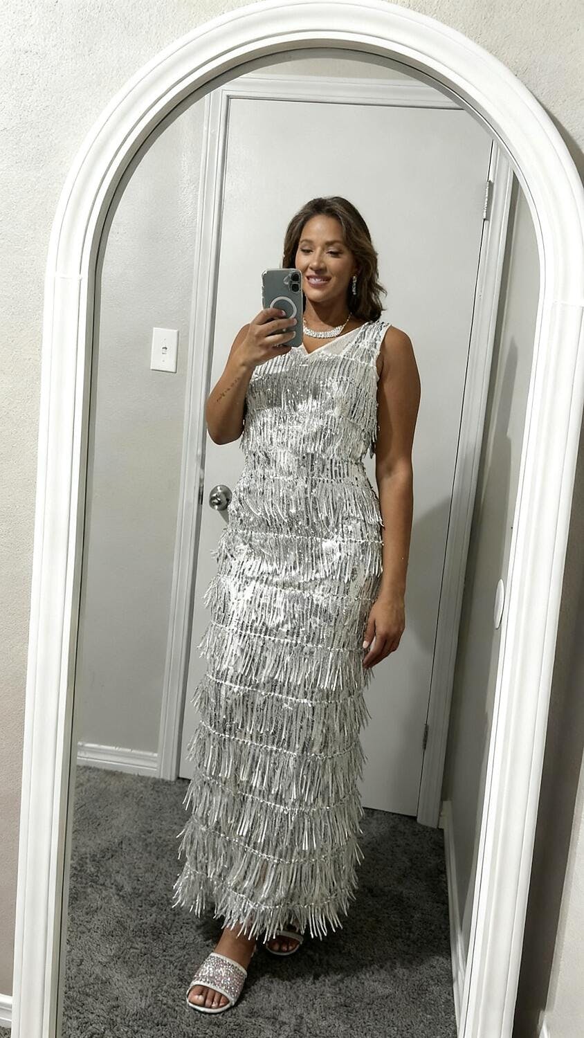 Silver Sequin Fringe Maxi Dress for Party